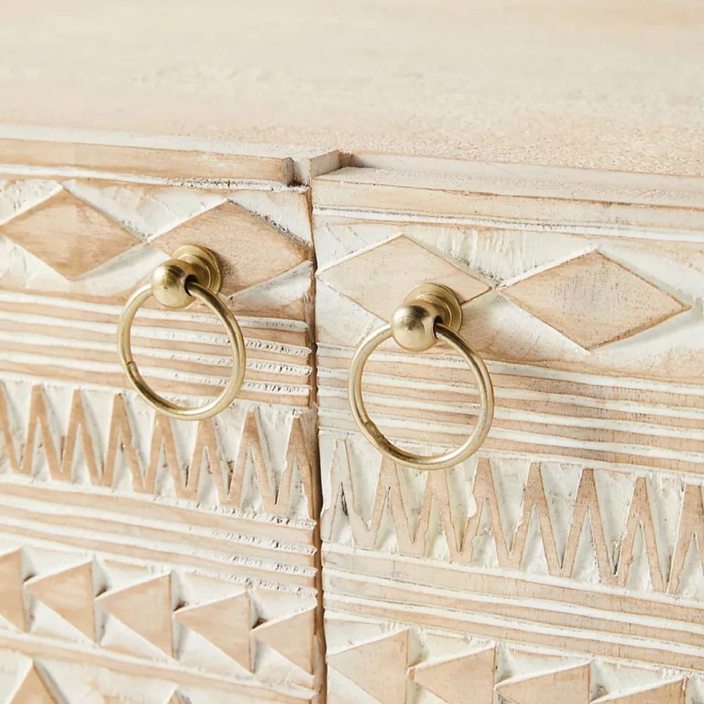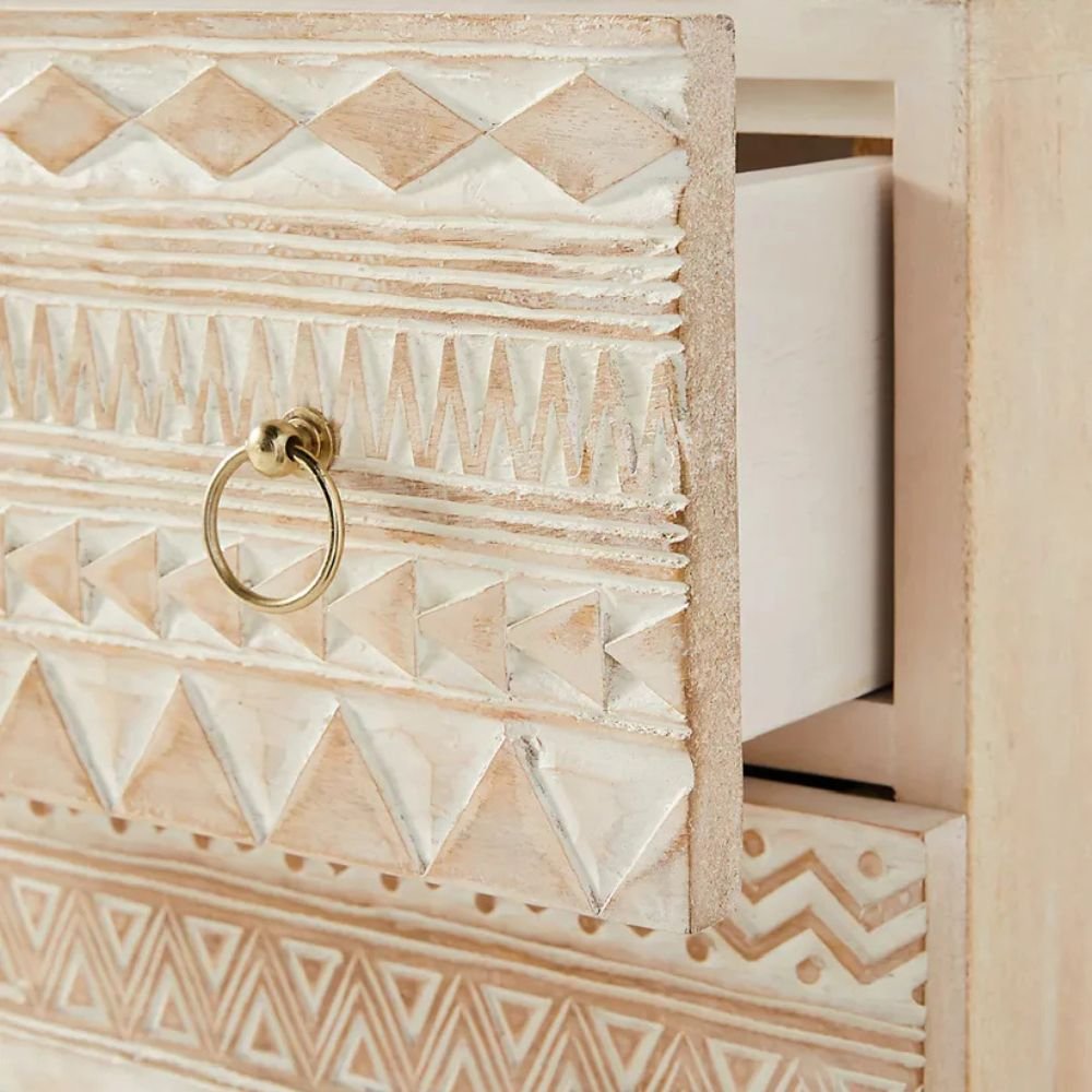 Hand Carved Mango Wood Drawer Chest