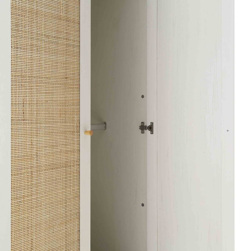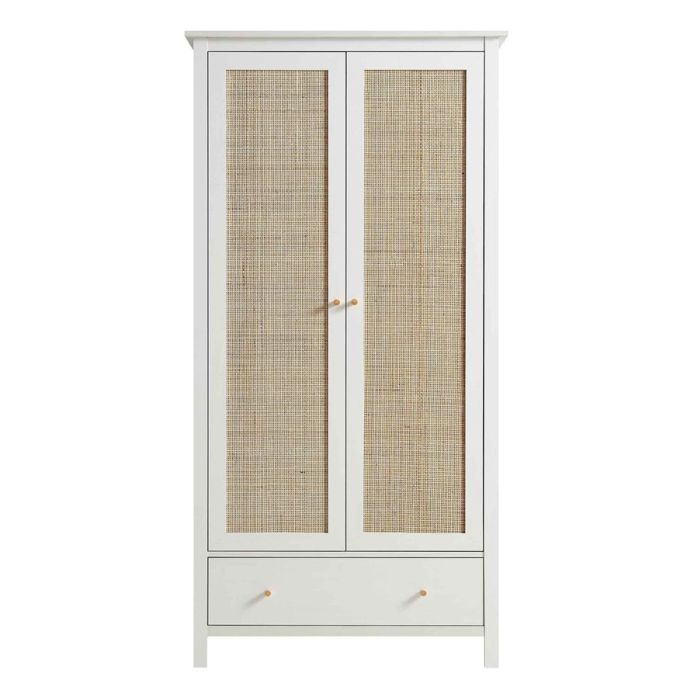 Frances Rattan Double Closet with 1 Drawer, White