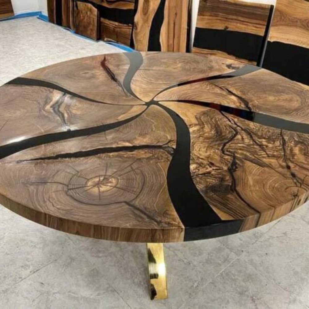 Be the first to review “Live Edge Round Dining Table Set For 6”